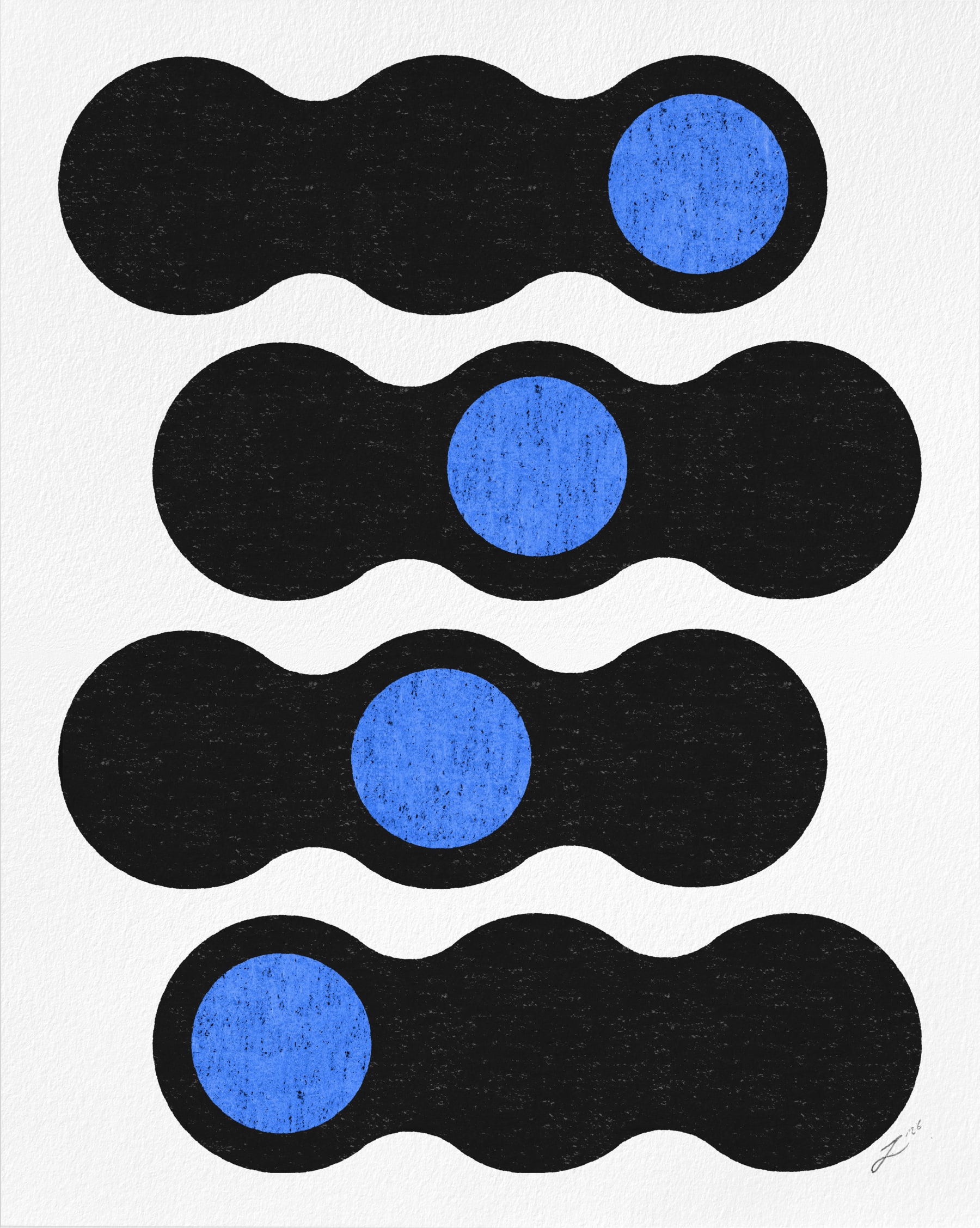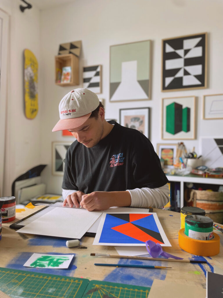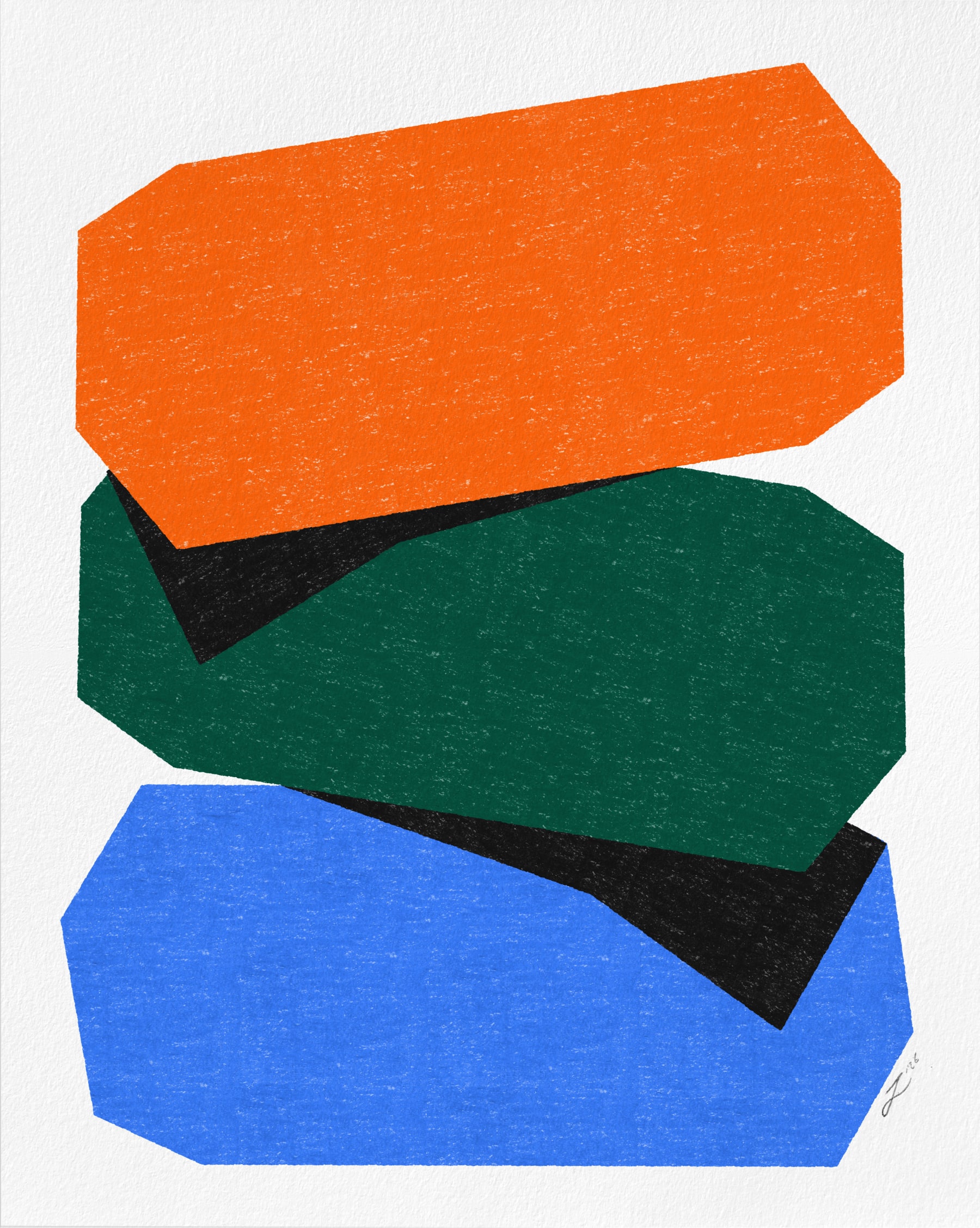 The works explore colour, texture, and playful compositions. Created at home, on sunny days by the river, train rides, and after meaningful conversations. Produced in small and open edition batches for independent shops and individuals.